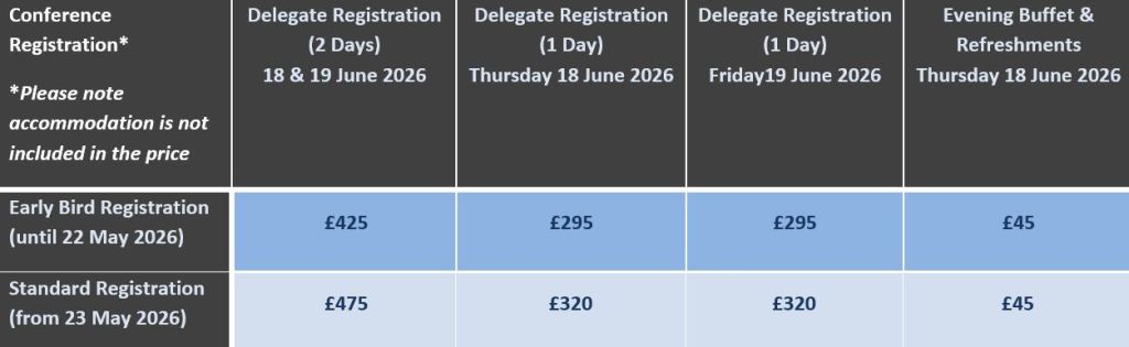 Accommodation We have arranged preferential rates at the venue for delegates seeking overnight accommodation. To book, please book online here to secure the discounted rate of £147.00 (this price does not include a £1.20 City Visitors Charge). Places are limited so please book early. A wide range of alternative accommodation, to suit every budget, is also available close to the conference venue.